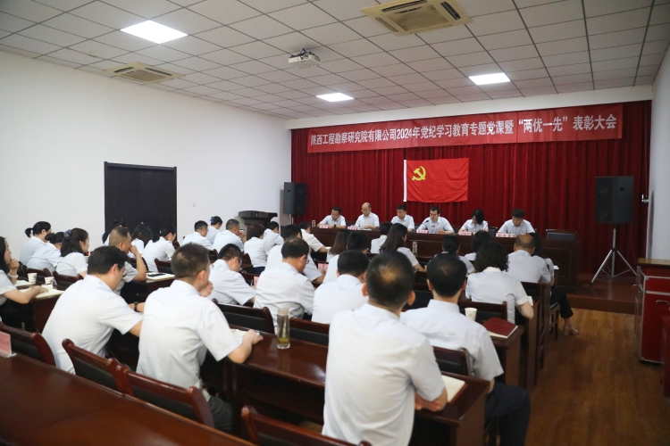 為扎實推進黨紀(jì)學(xué)習(xí)教育見行見效,激勵廣大黨員干部學(xué)優(yōu)爭先、砥礪前行,6月25日上午,陜西工勘院召開黨委書記講黨紀(jì)學(xué)習(xí)教育專題黨課暨“兩優(yōu)一先”表彰大會。公司黨委書記、執(zhí)行董事、總經(jīng)理黃立新講授黨紀(jì)學(xué)習(xí)教育專題黨課,黨委副書記、工會主席蒙興厚主持會議并宣讀表彰決定。